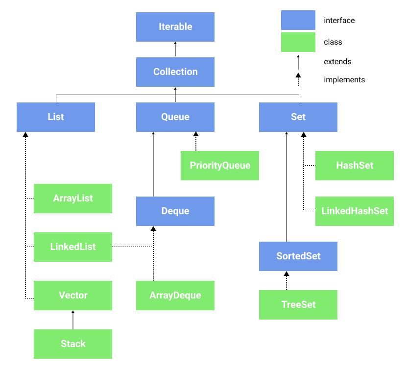 Java Collections Framework Java Collections Framework란 일반적으로 재사용 가능한 컬렉션 자료 구조를 구현하는 클래스 및 인터페이스 세트이다. 자바 초기에는 Vector, Stack, Hashtable 등의 컬렉션 클래스..